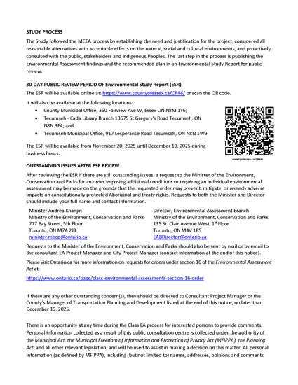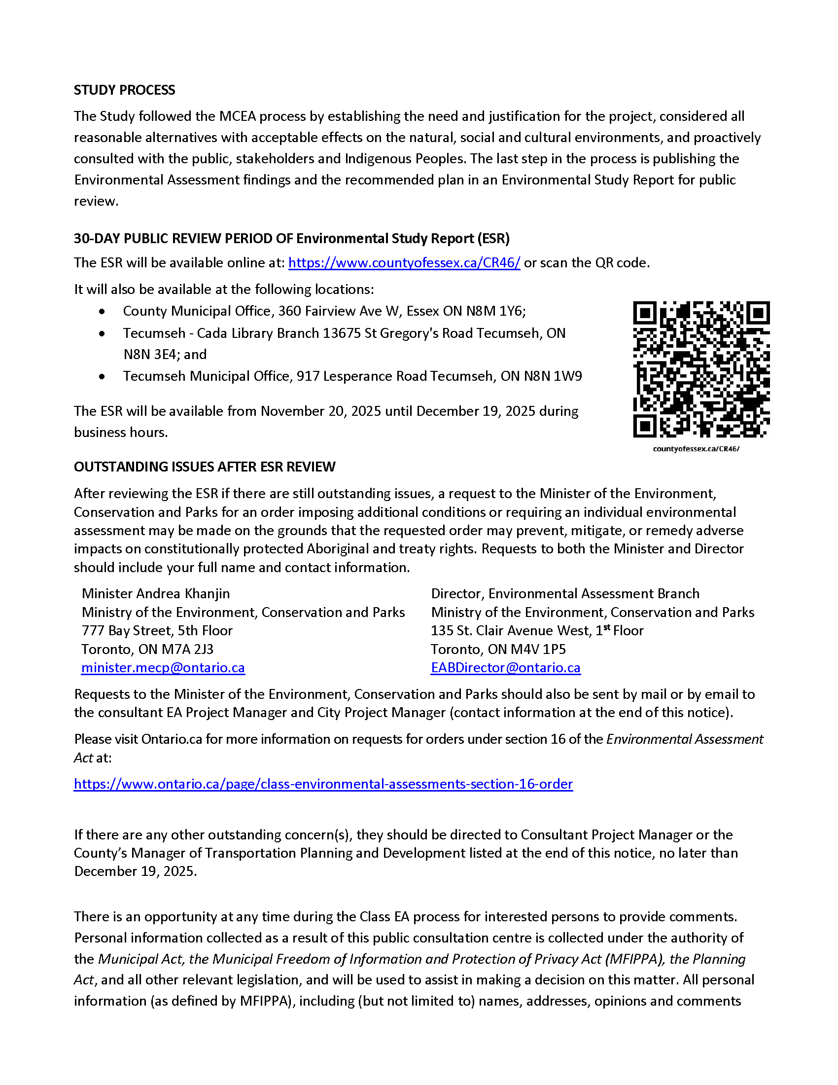 Notice of Study Completion: County Road 46 Environmental Assessment