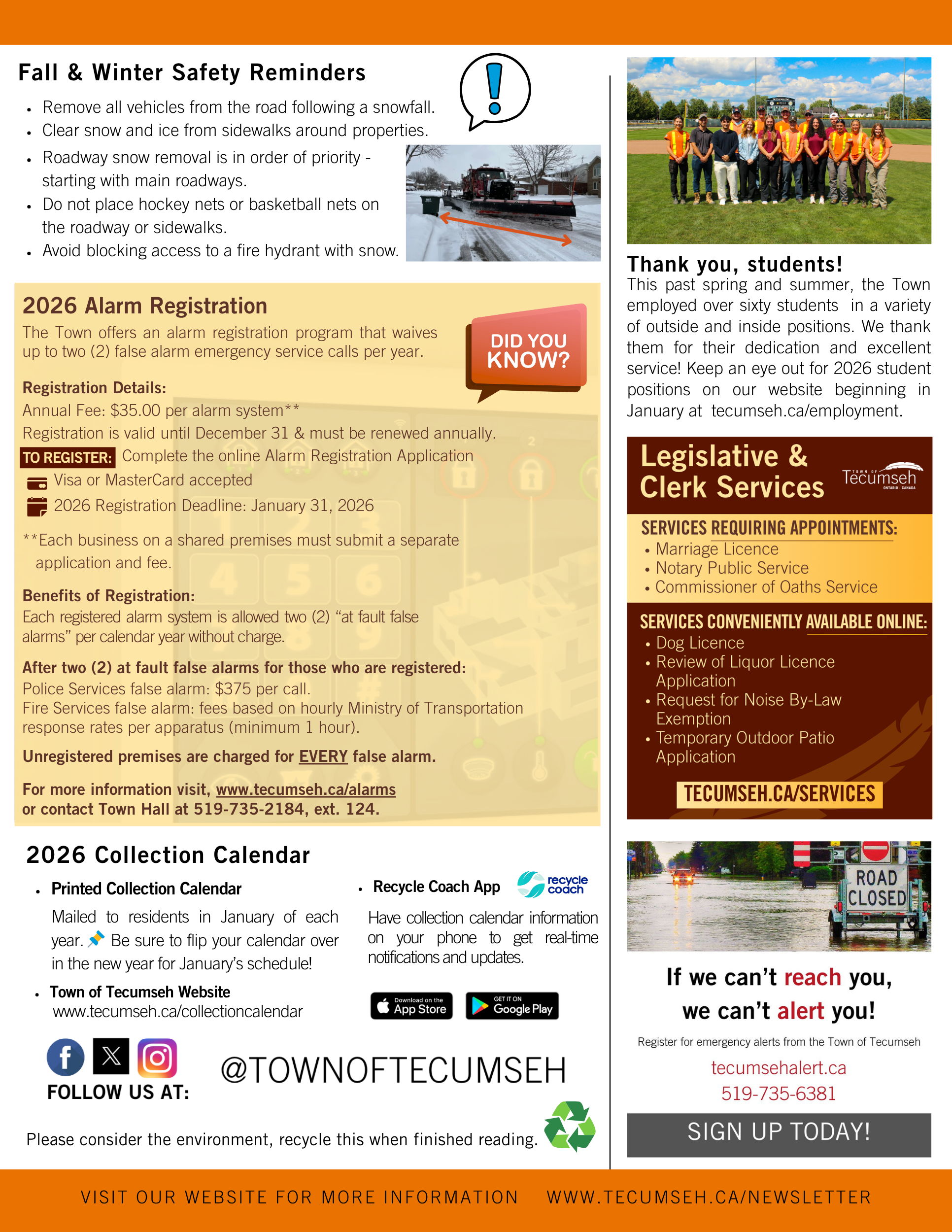 The Fall/Winter edition of the 'Your Tecumseh' newsletter is available!